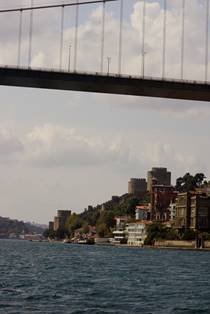 Am nächsten Tag hatten wir eine sehr lange Etappe vor uns, deshalb früh 6:00 Uhr aufstehen, 7:00 Uhr wollten wir los. Im Wetterbericht waren 5 Windstärken angesagt, was uns schon nicht richtig gefiel. Unsere Richtung war Südost und die Windrichtung Nordost also die Welle würde halb schräg von vorn auf Backbord kommen, könnte noch gehen. Was uns an diesem Tag erwartet hat, konnten wir nicht abschätzen. Ab etwa halb neun wehte der Wind beständig mit 6 Windstärken und die Wellen wurden immer höher, Ellen hat an diesem Tag nur wenig Fotos gemacht, da sie genug damit zu tun hatte, sich festzuhalten, mal etwas zu trinken zu holen und wieder festzuhalten. Die Gangway haben wir auf dem Meer abgebaut, sonst wäre die Befestigung am Dach zerborsten. Stühle Tische alles lag am Boden, und Pauline hat unter den Wellen ganz schön gekrächzt. Ein Geschaukel, das den ganzen Tag bis zur Einfahrt des Bosporuses angehalten hat. Wir haben ihn gegen 17:00 Uhr erreicht, dann hatten wir die Welle von hinten und die See hat uns geschoben. Aber die 10 Stunden mit den Wellen von 3-4m haben gereicht.