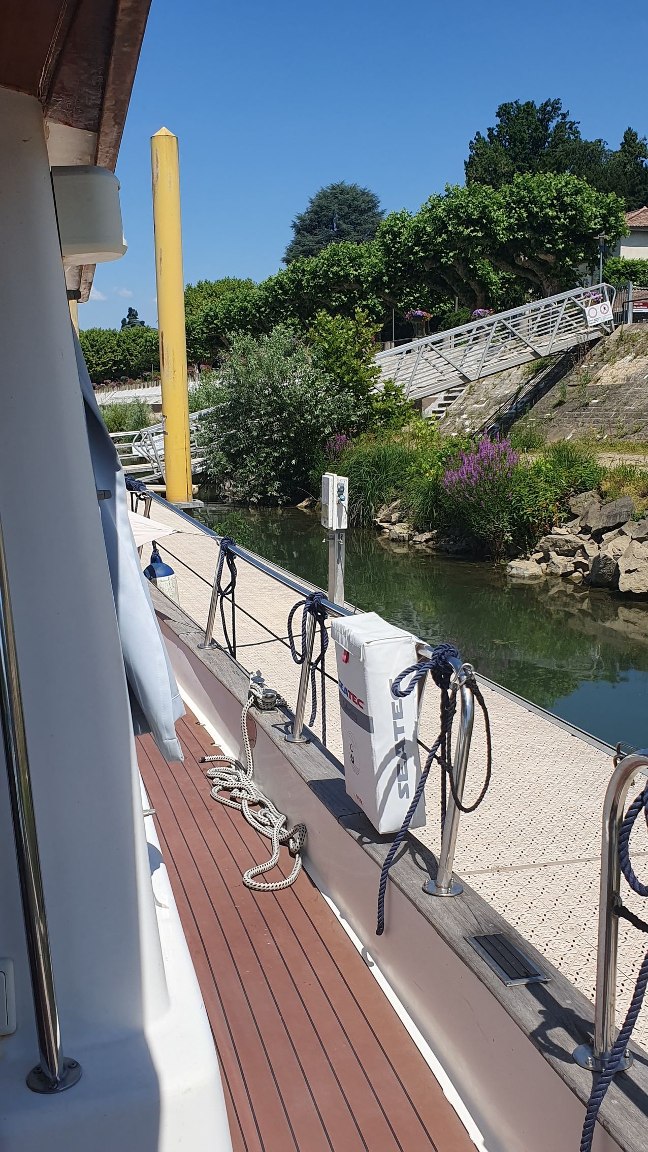 19.06.2025, Happy, Wir sind happy!!! Wir sind in Port Louis an der Rhone angekommen. Es war eine sehr, sehr harte Tour. Viel Wind und hohe Wellen, aber jetzt sind wir hier. Die erste große Etappe geschafft. Hier ein paar Zahlen. 1248 Seemeilen ( 2.311 KM), 178 Stunden Motorleistung, das heißt, wir waren 178 Stunden auf See. Jetzt unsere Bestände an Trinkwasser und Lebensmittel auffüllen und das Schiff von Salzwasser reinigen. Außerdem den Abend im Restaurant genießen. Der Google-Übersetzer tut uns gute Dienste, einige Wörter können wir sogar erraten. Am 21.06.2025 geht es dann in die Seeschleuse, die vor der Tür liegt, in die Rhone