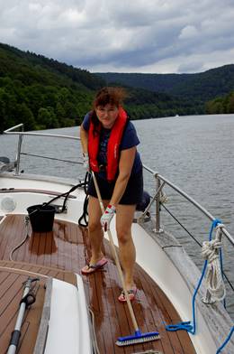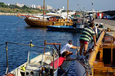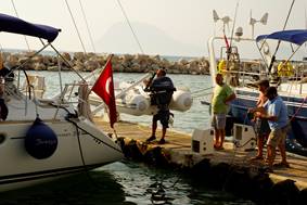 In Constanza angekommen, im wundervollen Hafen Port Tomis, nahm der Verlauf der folgenden Tage dann keinen schönen Verlauf mehr. Zuerst verlor ich mein Handy (liegengelassen, gestohlen, verloren??) und dann wurden wir am Samstag von einem Metallboot, das mit Tauchern besetzt war, am Kai gerammt. Schrammen am Boot, verbogen Davit (die Vorrichtung zum anhängen des Beibootes) und ein verbogenes und rausgerissenes Leitblech vom Auspuff (Hier hatten wir dann leichten Wassereinbruch in der hinteren Bade-Plattform). Anschließend viele Schaulustige anwesend, Küstenwache, Wasserschutzpolizei und Hafenmeisten an Bord, und viel Papierkram. Zurzeit warten wir auf die Reparatur, Beseitigung des Wassereinbruchs, und hoffen, am Montag wieder weiter fahren zu können.