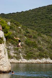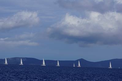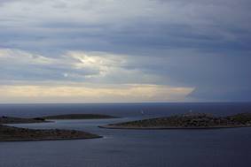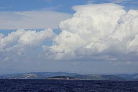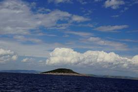 Am nächsten Tag ging es zu den Kornaten, wo wir wieder von einer Welle begleitet wurden, die uns Grummeln im Bauch verursachte. Das Wetter verschlechterte sich Zusehens. Die Wolken wurden immer mehr.