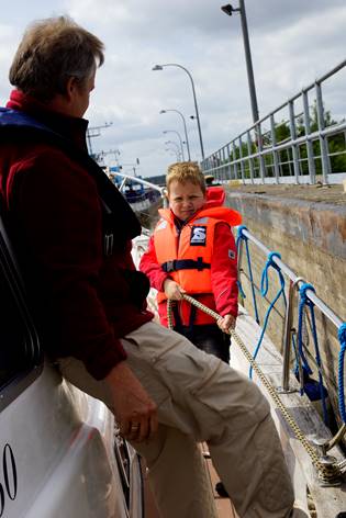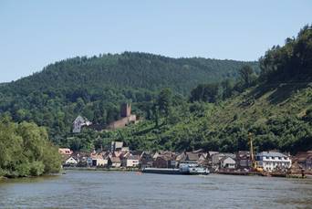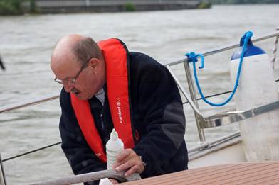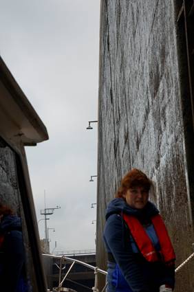 Da nur wenige Berufsschiffe unterwegs waren, hat sich unsere Fahrweise verändert. Mit 10km/h kommen wir sehr relaxt auf dem Main voran. Jetzt beginnen die Schleusen, die uns richtig Arbeit machen. Hinter einem Schubschiff (zwei Teile mit einer Gesamtlänge von 190m) mussten wir schleusen. Bei der Einfahrt Strudel im Schleusenbecken, beim Anlegen vorn fest gemacht, statt in der Mitte(mein Fehler), somit standen wir quer in der Schleuse und die Pauline tanzte unter uns durch die Strudel des Schubverbandes. Die Strudel ließen nicht nach, wieder beim Hinterherfahren Strudel, fast an die Schleusenausfahrt gedrückt, scheiß Schubschiffe!!! Die nächsten drei Schleusen sollten wir immer mit dem Schubschiff schleusen und konnten dadurch Technik des Anlegens über die Mittelklampe verbessern.