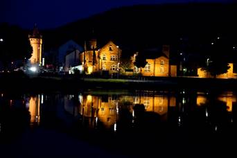 Vidin im Abendlicht, und wir, immer noch nicht im Hafen. An diesem Tag stand eine lange Tour an, verbunden noch mit einer Schleuse und das war der Haken. Auf der Strecke gab es keine Stadt in der wir hätten anlegen können, auch waren keine Ankerplätze ausgeschrieben. Also sind wir bei Zeiten los und waren auch noch pünktlich vor der Schleuse. Wir haben uns angemeldet, es wurde uns nur gesagt, wir sollen warten. Nach einer Stunde habe ich nachgefragt, ob es ein Problem gibt? Nein kein Problem, wir sollten auf die serbische Seite der Schleuse fahren. Die eine Schleuse ist auf serbischer Seite, die andere auf rumänischer. Dann passierte wieder nichts. Dann habe ich losgeschimpft über Funk. Jetzt meldete sich die rumänische Seite, wir können in einer Stunde dort schleusen. Insgesamt haben wir 3,5 Stunden rumgestanden, ohne dass auch nur ein Schiff rein oder raus gefahren ist. Vidin haben wir dann im Dunkeln erreicht.