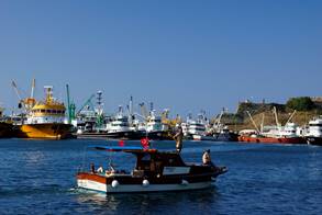 Dann in Igneada (Türkei) sind wir mit gelber Flagge (d.h.: alle gesund an Bord und wir wollen einklarieren, was aber erst in Istanbul geht) und türkischer Gastflagge eingelaufen. Fischer halfen uns, unter den Augen der Küstenwache, an einem Fischerboot festzumachen. Wir wussten, dass wir das Land nicht betreten dürfen, ehe wir im Port of entry, Istanbul sind. Wir blieben also an Bord. Nach 2 Stunden kam dann einer von der Küstenwache: Pässe, Schiffspapiere, Führerschein alles wurde kopiert und ständig telefoniert. Das Ende vom Lied war, wir mussten im Hafen ankern, da wir nicht an Land festmachen durften. Wäre auch alles nicht so schlimm gewesen, hätte der gute Mann uns das bei Helligkeit gesagt. So fuhren wir bei Neumond in den Hafen und haben dann dort geankert. Wir hatten aber trotzdem eine ruhige Nacht.