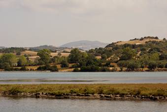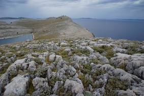 Eine karge wilde Landschaft. Wilder Salbei und Rosmarin wachsen in dem kahlen, felsigen Untergrund.