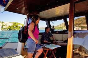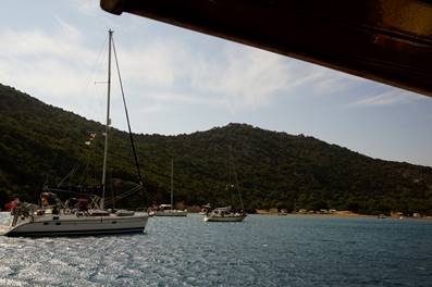 Es war der Morgen des 15.08. und wir lagen am Kai hinter unzähligen Fischerbooten im Hafen von Marmara. Da wir eine längere Etappe vor uns haben, klingelt der Wecker früh um 7.00 Uhr. Nach dem Frühstück kommen wir 7.45 Uhr los. Nach etwa 2 Sm (ca 3,7 Km), recht schauklige See, springt vom Dach auf einmal eine Katze herunter. Da wir alle Fenster und Türen auf haben, ruft Franz mach schnell alles zu, wenn die erst drin ist, kommt die nicht mehr raus. So schnell wie die Katze war ich leider nicht, sie ist durch ein Küchenfenster mit Fliegengitter reingesprungen. Sie hat einmal in alle Räume geschaut, dann konnte ich sie mit dem Besen rausjagen. Alle Fenster und Türen haben wir zugemacht, die Katze hat auf dem Dach wieder Platz genommen und wir haben sie in den Hafen zurück gebracht. Die Fischer kamen angelaufen, da sie gedacht haben es wäre etwas passiert. Sie haben uns geholfen die Katze runter zu jagen und uns eine gute Reise gewünscht.
