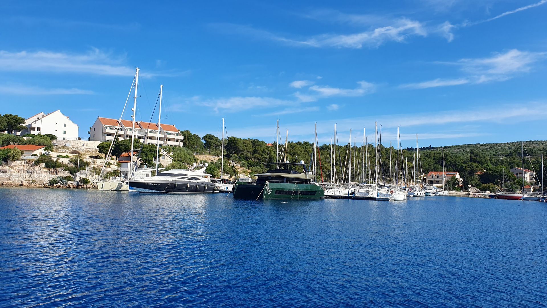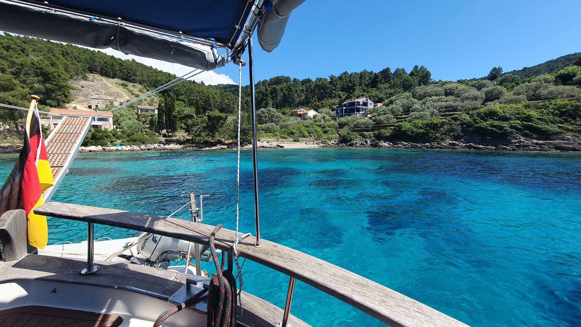 26.04.2025 bis 06.05.2025 Kleinere Reparaturen am Schiff, Proviant und auch Wein bunkern. Wir hatten eine Undichtigkeit an unserem Schlauchboot „Paulinchen“ und haben die dann in Milna repariert. Bei der Kontrolle, ob auch der Kleber hält , ist es passiert. Kopfüber stürzte ich ins Hafenwasser. Oh, wie peinlich. Als erstes habe ich gelauscht, ob Gelächter aufkam, aber es blieb alles ruhig. Als zweites habe ich mich umgeschaut , ob jemand das beobachtet hat. Nichts zu sehen. Also vorsichtig über die Schwimmtreppe aufs Boot, so dass mich nur keiner sieht. Gott sei Dank, Ellen war nicht an Bord, ihre Bordpredigt und spätere Häme, hätte mir gerade noch gefehlt. Wenn ein Angler in Milna, oder in der Adria, ein Fisch fängt, der eine Brille auf der Nase hat, der soll sich bei mir melden.