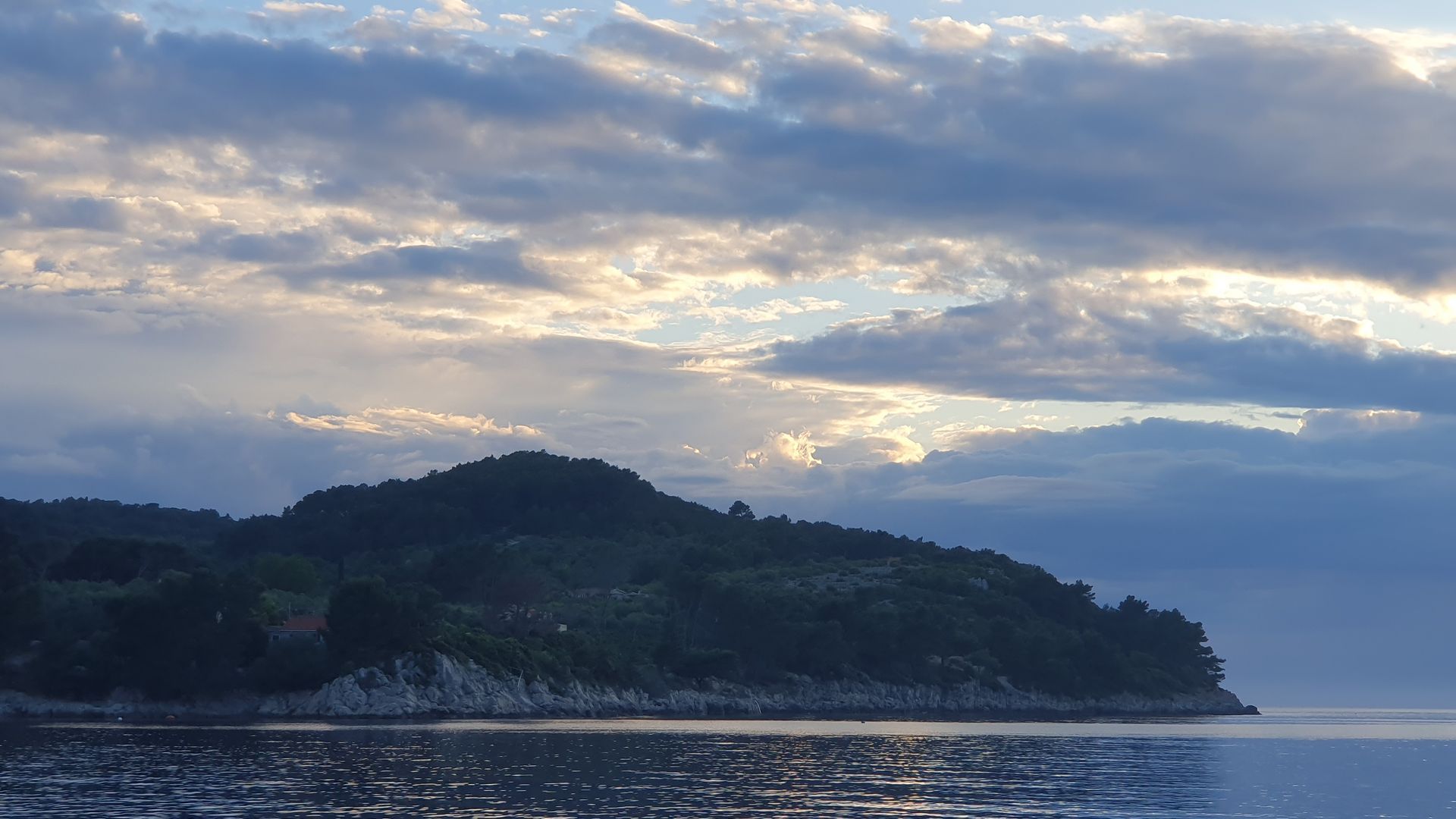 07.05.2025, Abfahrt nach Veli Luka, auf der Insel Korcula. Dort bei 19 Grad Lufttemperatur ankern. Bei einer Wassertemperatur von 20 Grad, springende Schwertfische gesehen. In der Nacht heftiges Gewitter, mit starken Regenschauer und viel Wind. Hoffentlich hält der Anker. Er hält.