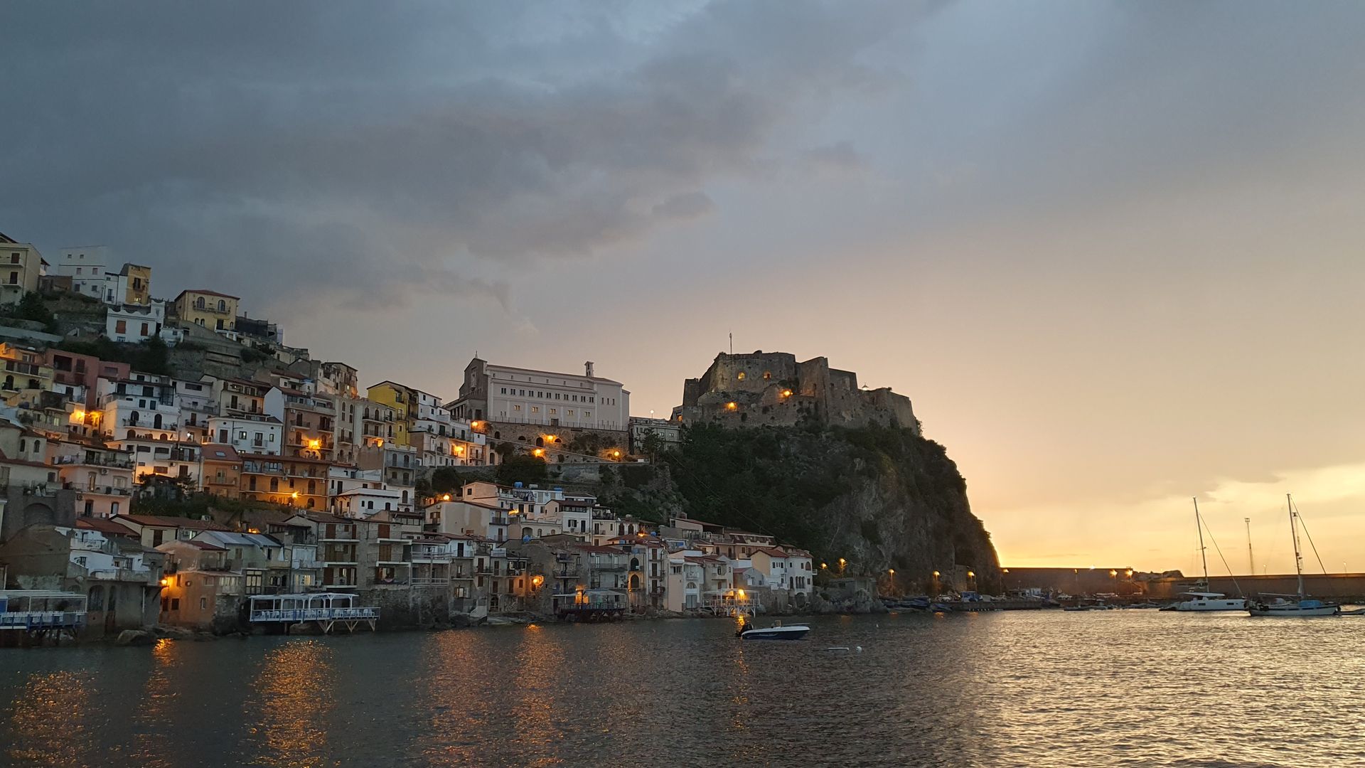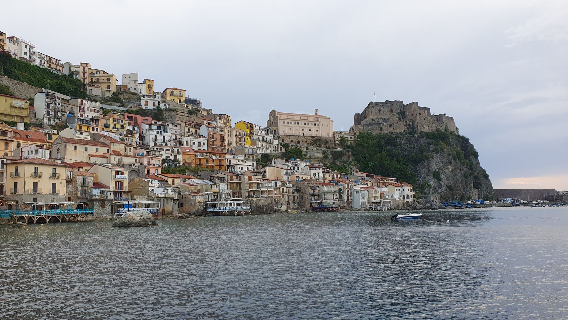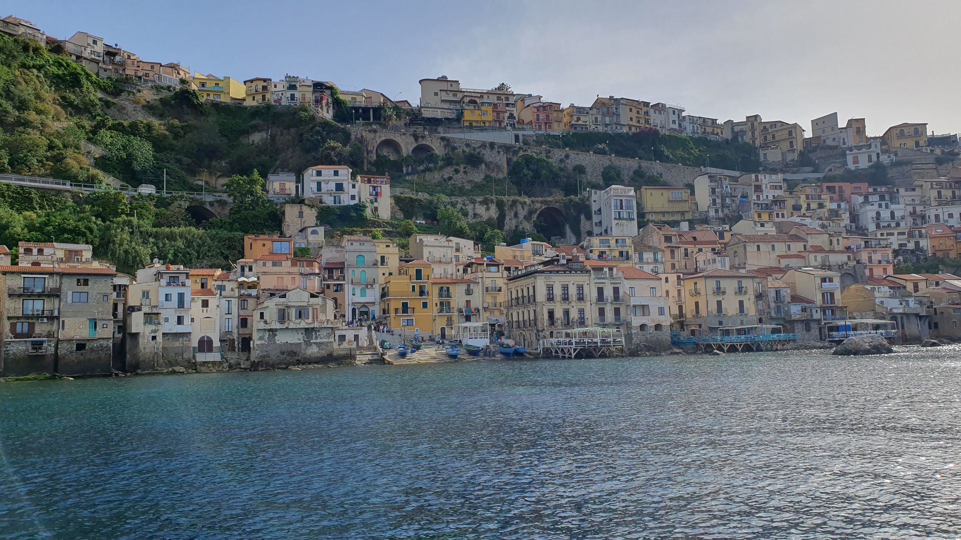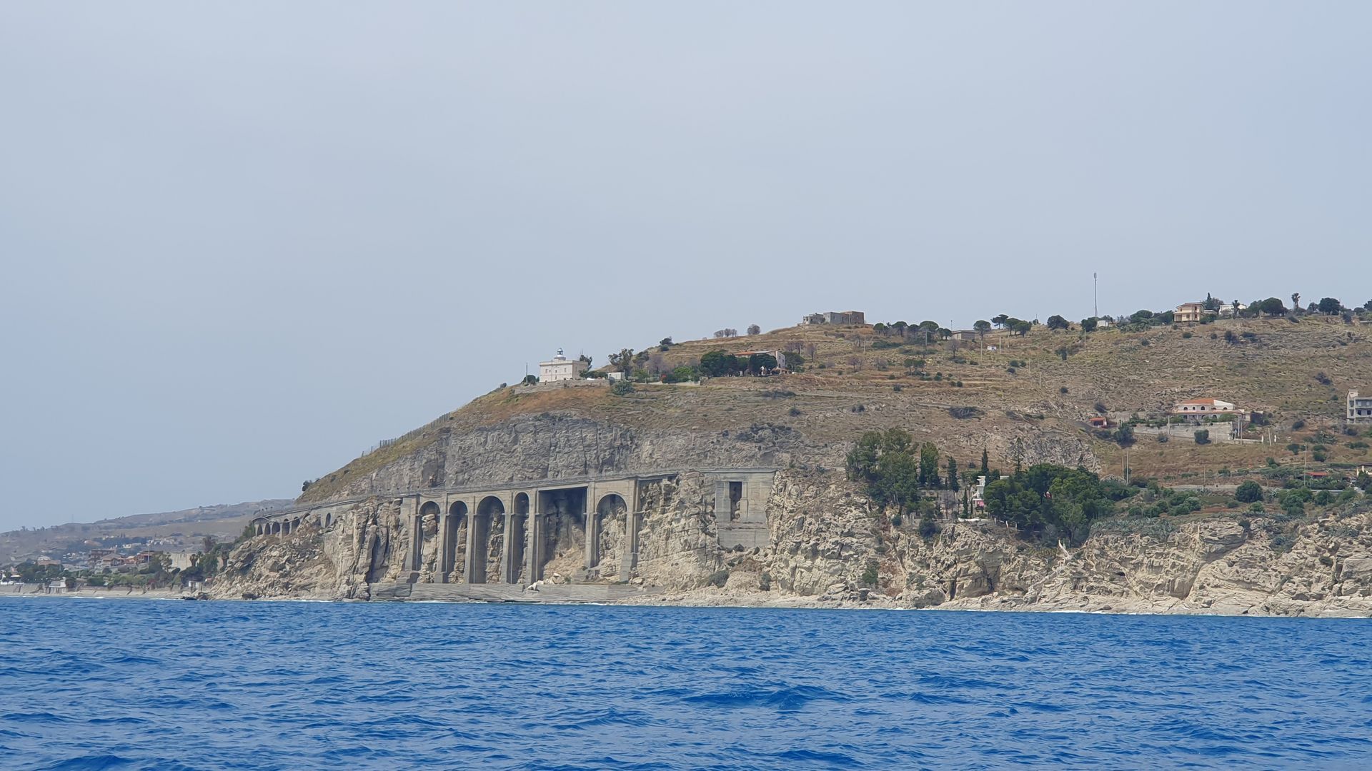 20.05.2025, 7:30 Uhr Abfahrt nach Reggio di Calabria, der Hafen vor der Durchfahrt,der Straße von Messina liegt. Wir mussten allerdings dann erfahren, dass der Hafen Gebühren in Höhe von 150,--€ verlangt und das für einen Hafen, der keinerlei Komfort bietet und recht weit zu den Einkaufsmöglichkeiten liegt. Also Sizilien links liegen gelassen und Weiterfahrt durch die Straße von Messina, zur Ankerbucht von Scilla. In der Straße von Messina gibt es eine Strömung von 4 Knoten, die von vorne kommt, so dass wir nur noch mit 5,5 Knoten voran kamen, bei 2000 Umdrehungen des Motors. Normal fahren wir dann 8,0 bis 9 Knoten. Aber wir hatten Rückenwind und es ging gut vorwärts. Die Kulisse von Scilla war sehr schön. In der Nacht gab es ein Gewitter mit Fall Böen von 6-7 Bft und strömenden Regen. Eine französische Yacht wurde Richtung See abgetrieben, bevor wir helfen konnten, wurde die Crew allerdings wach und hatte die Sache im Griff. Unser Anker hat gehalten und als das Gewitter vorbei war, hatten wir noch eine ruhige Nacht.