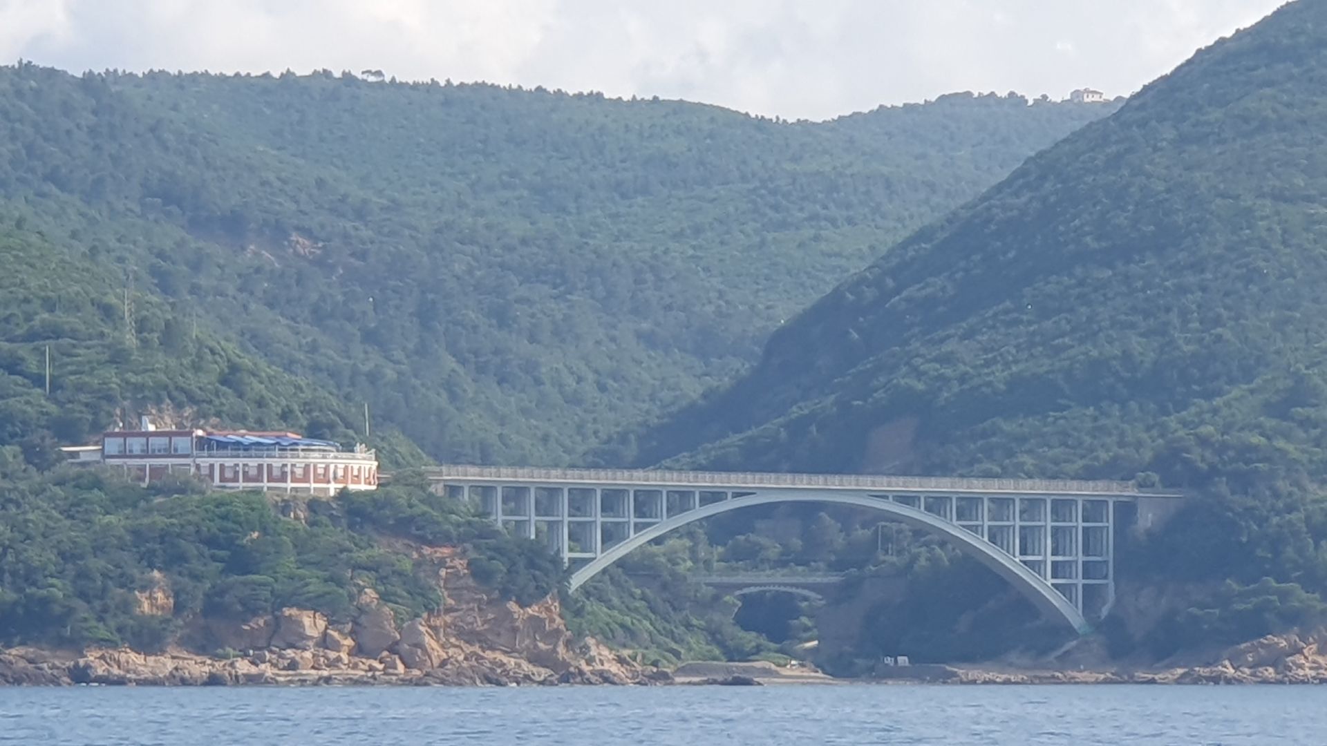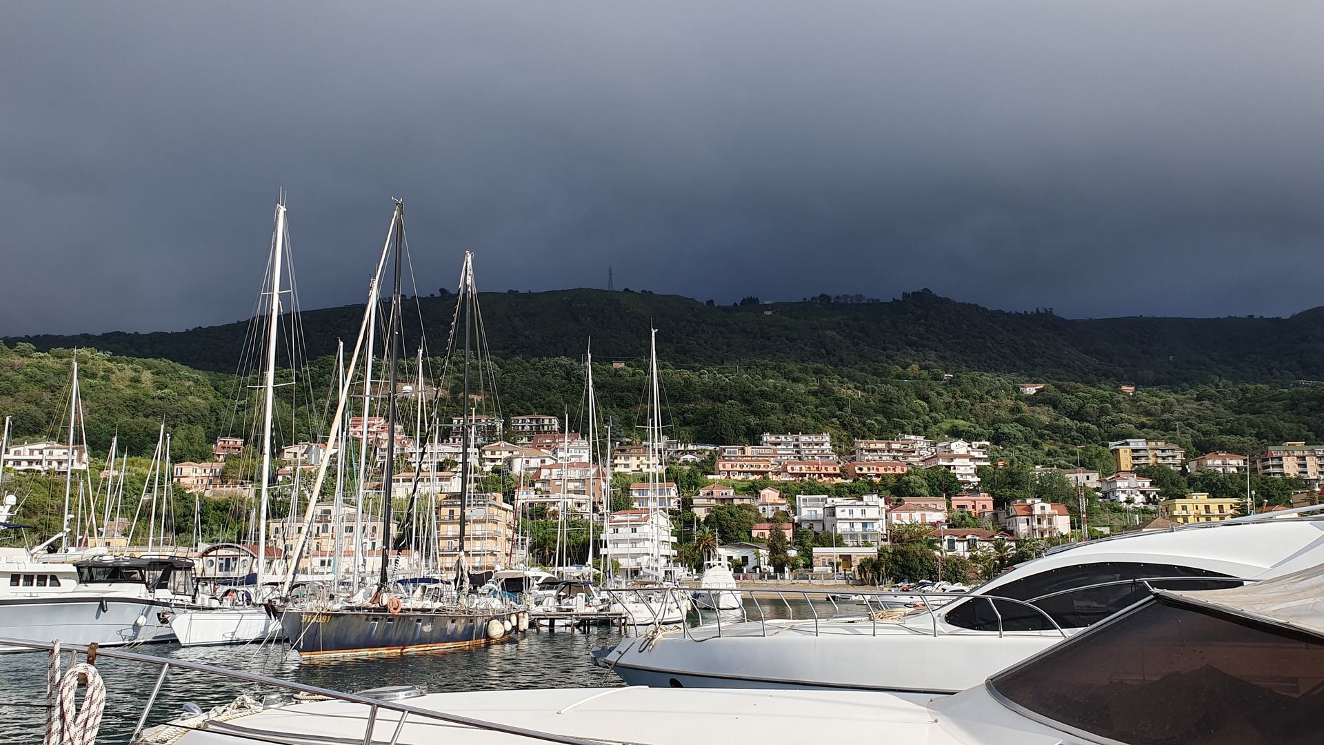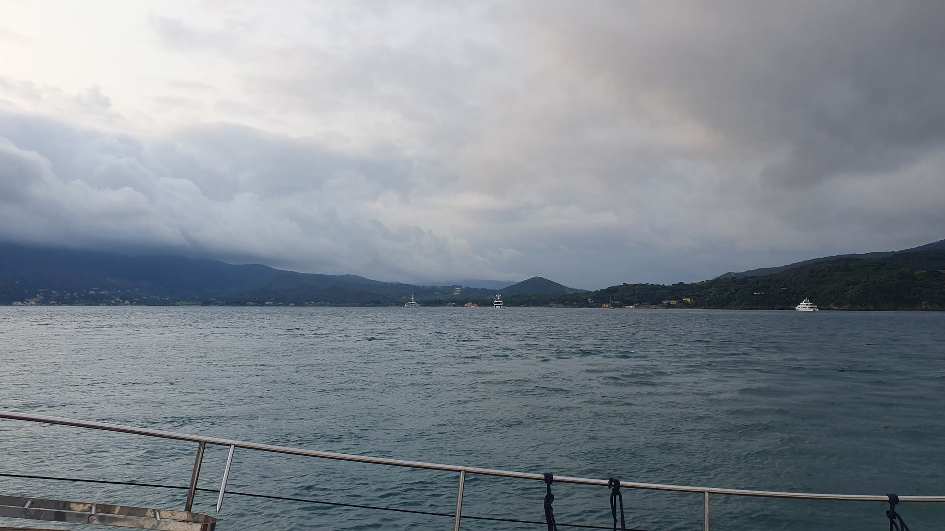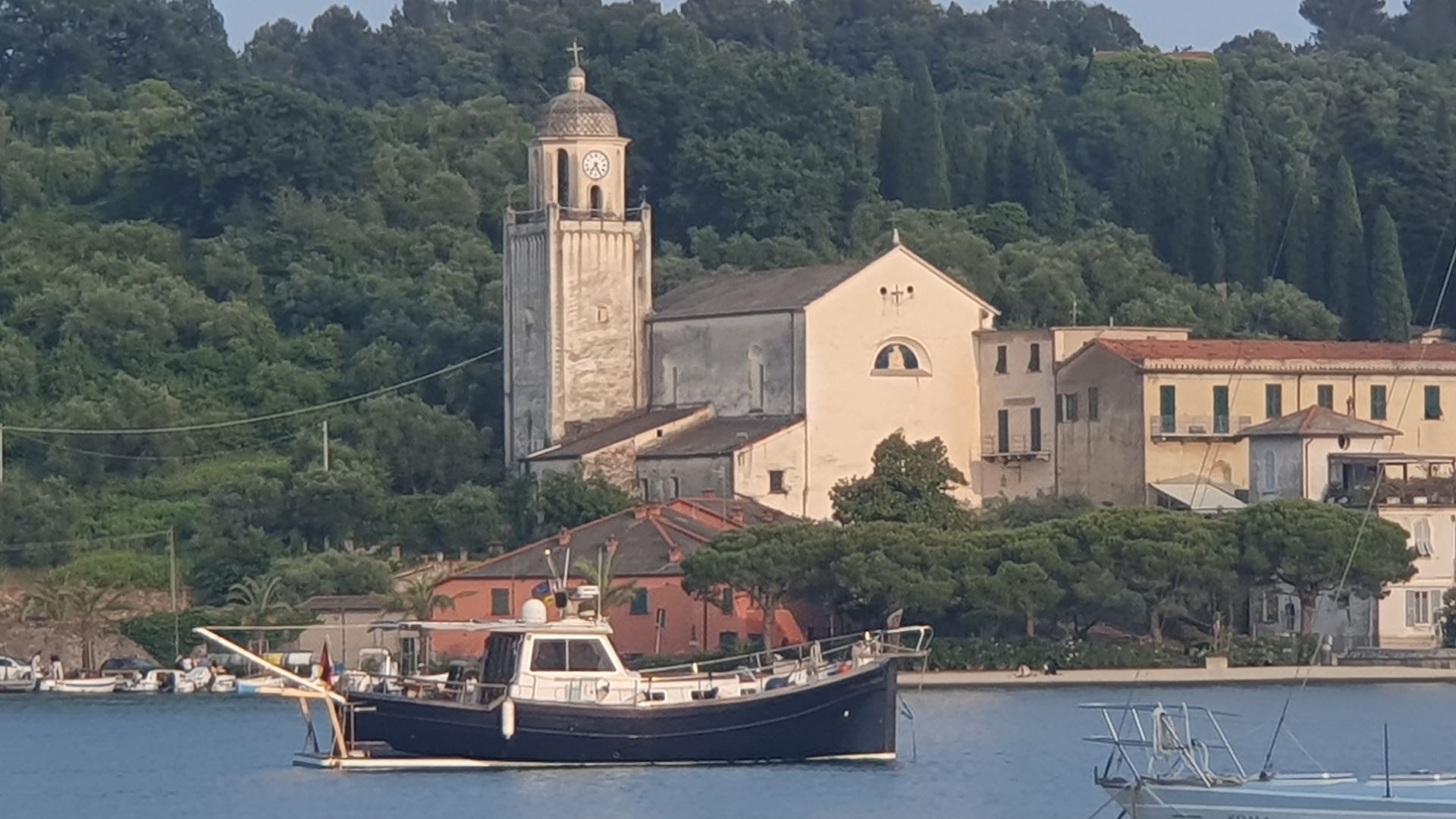 07.06.2025, Bei ruhigem Wetter fahren Richtung La Spezia. La Spezia ist eine großer Hafen in einer sehr großen Buch die viele Nebenbuchten hat. In der Bucht La Grazia konnten wir gut geschützt ankern. Eine der schönsten Buchten, die wir auf unserer Fahrt hatten.