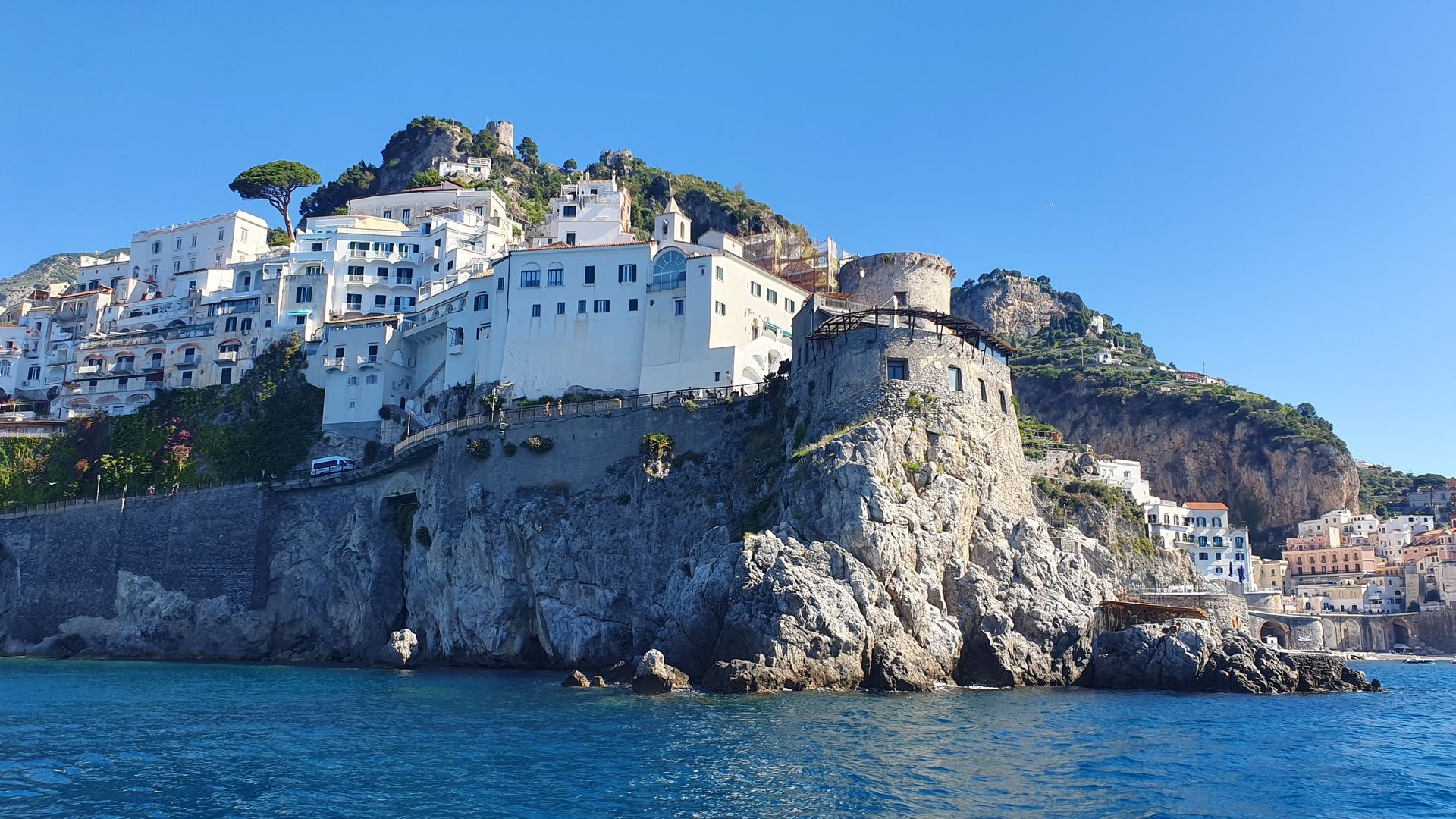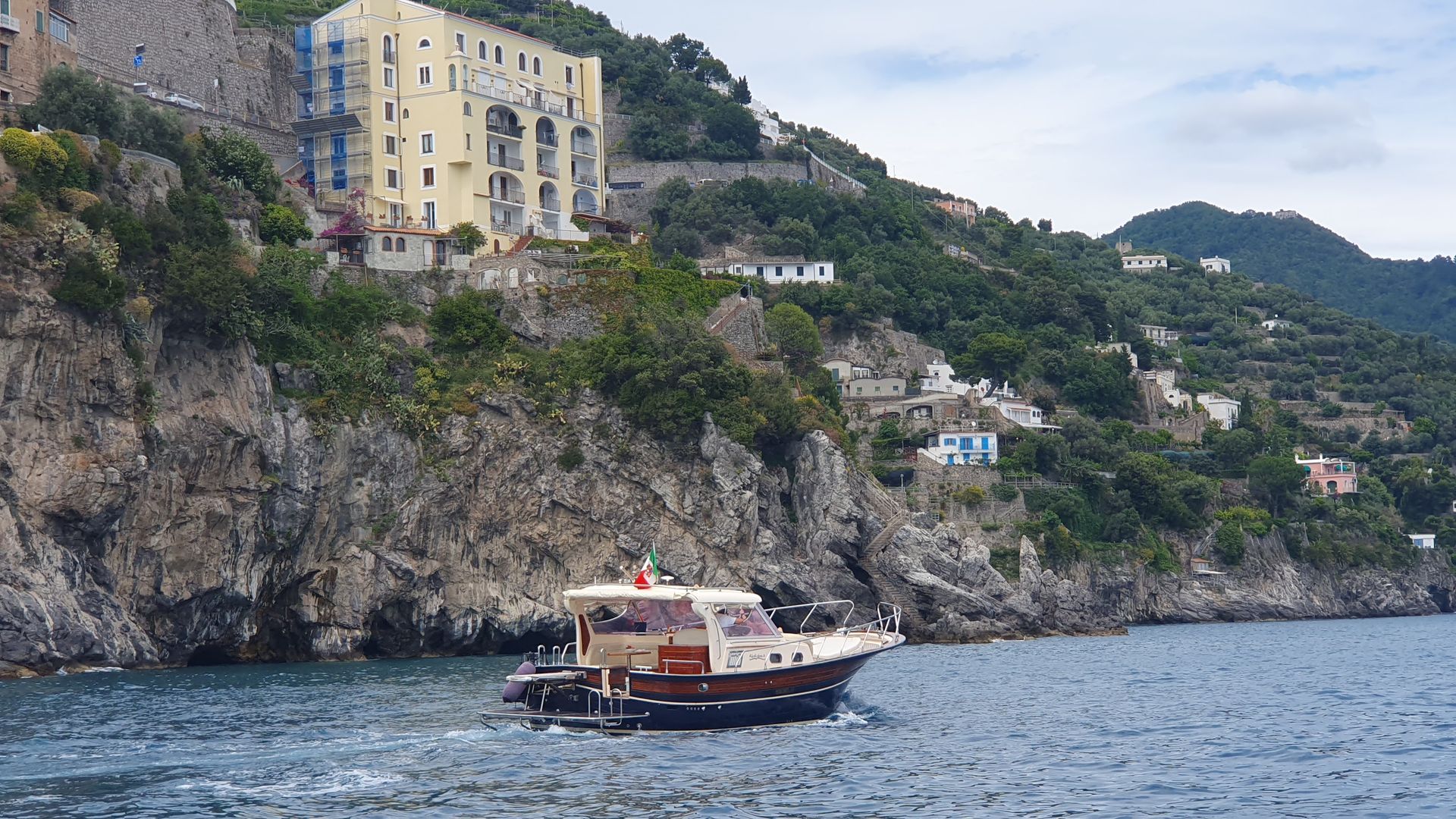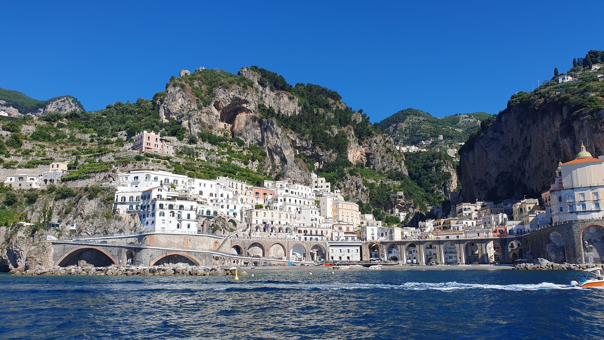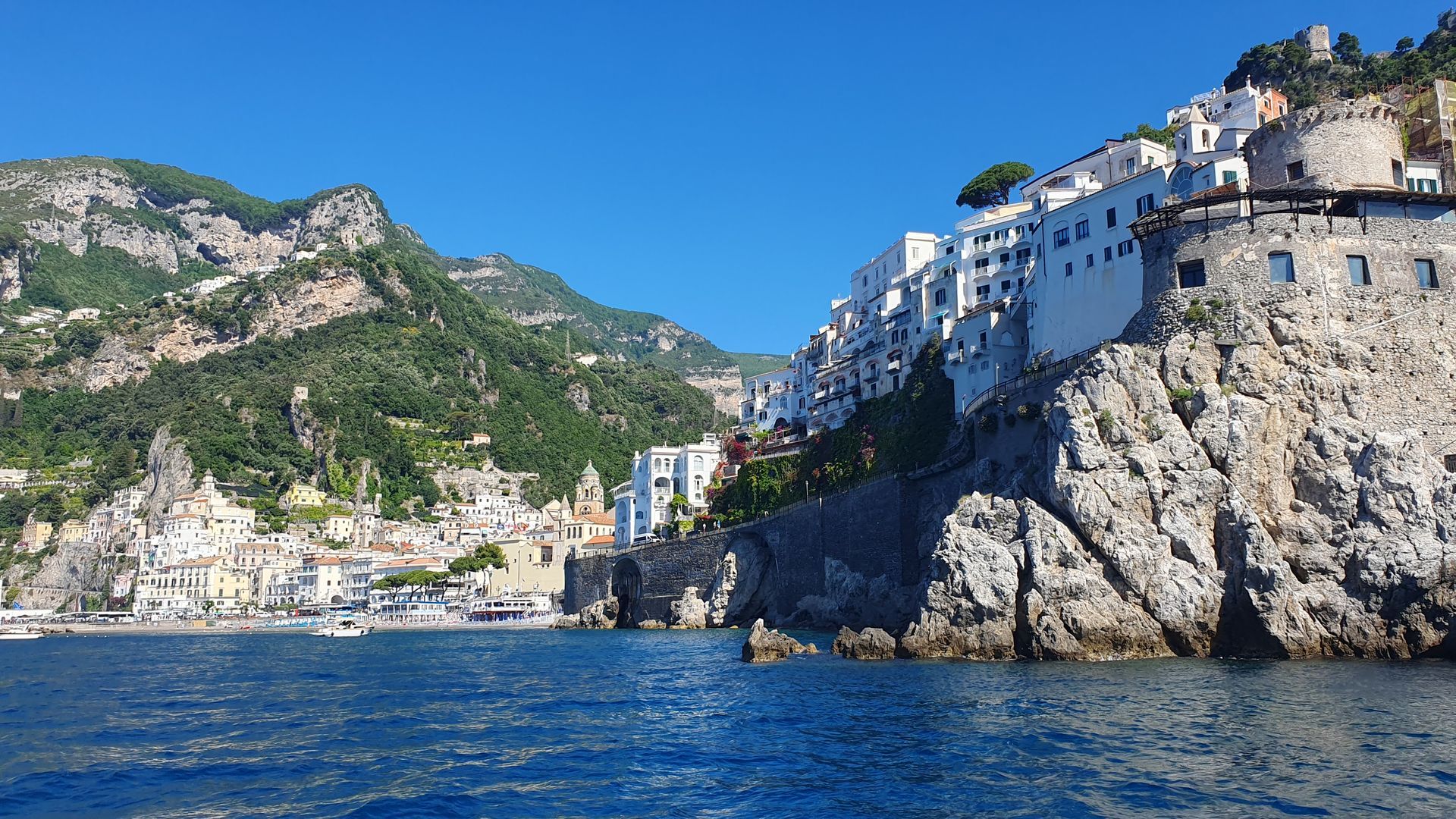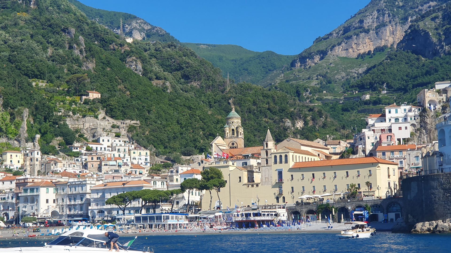 Meiner Meinung nach, wird die Amalfiküste total überbewertet. Tausende Touristen kommen mit Booten und Bussen und bevölkern die Stadt. Die hat, am Hang liegend, sicherlich eine schöne Ausstrahlung, aber wir haben auf unserer Fahrt einige Orte gesehen, die auch die gleichen Bauarten hatten und wunderschön am Hang lagen. Wegen den „Blauen Grotten“ herrscht eine total Unruhe auf dem Wasser vor der Stadt.
