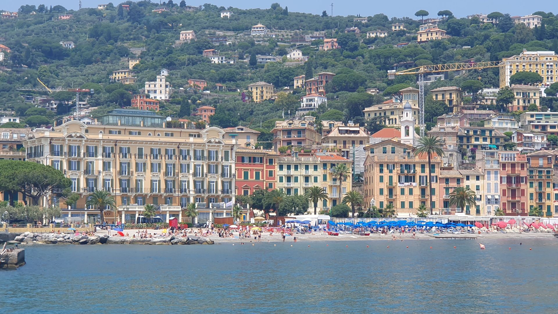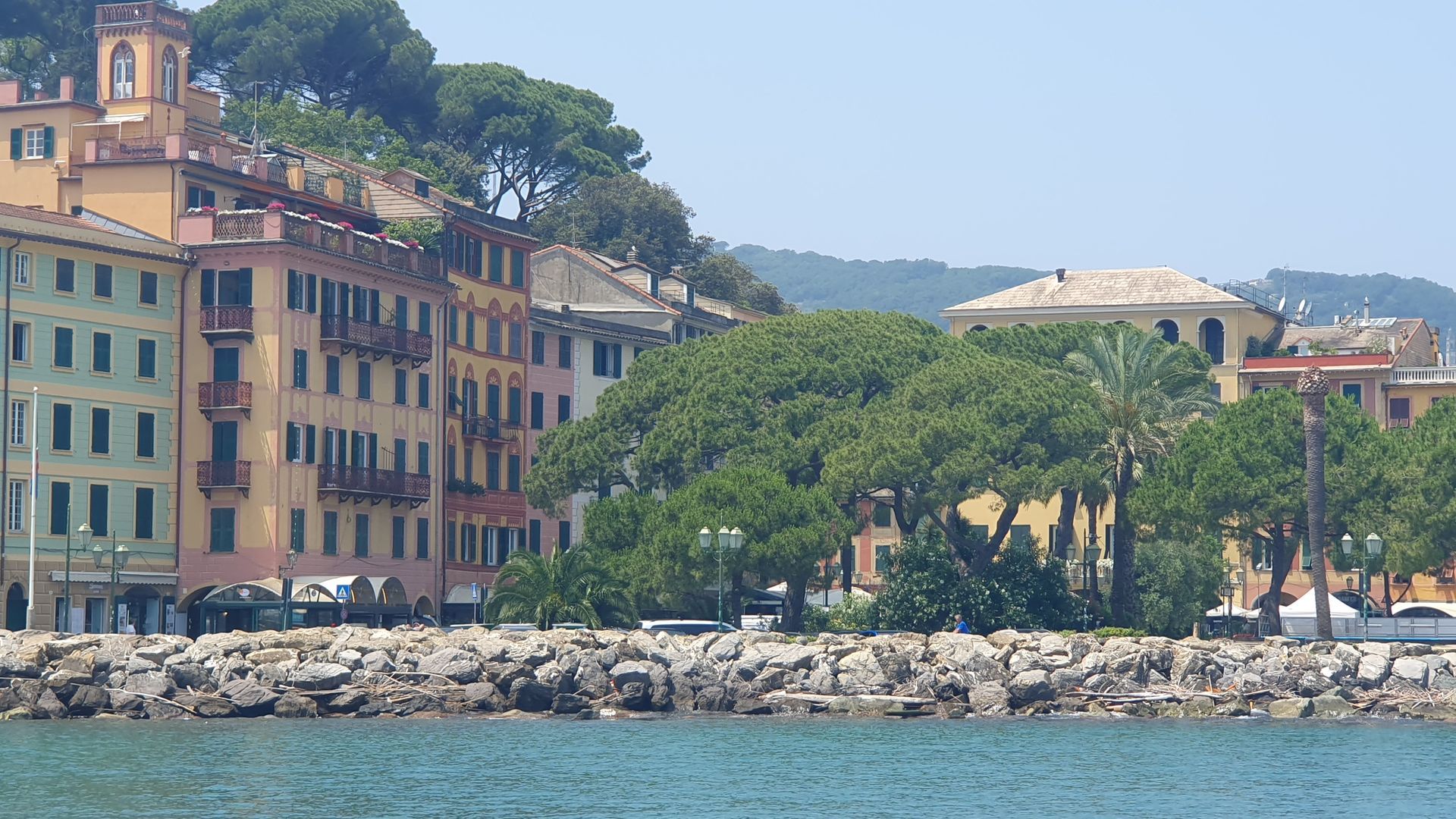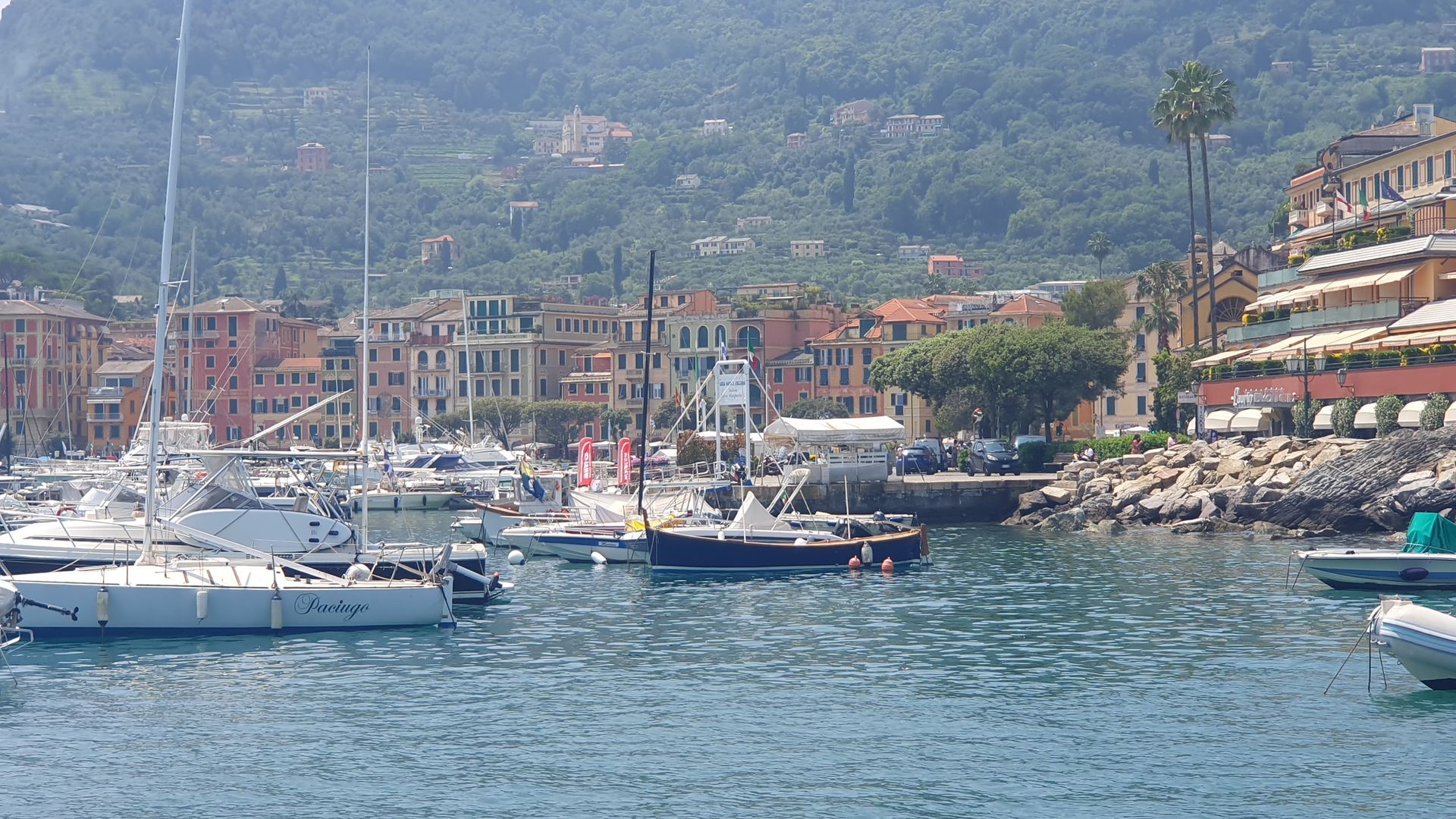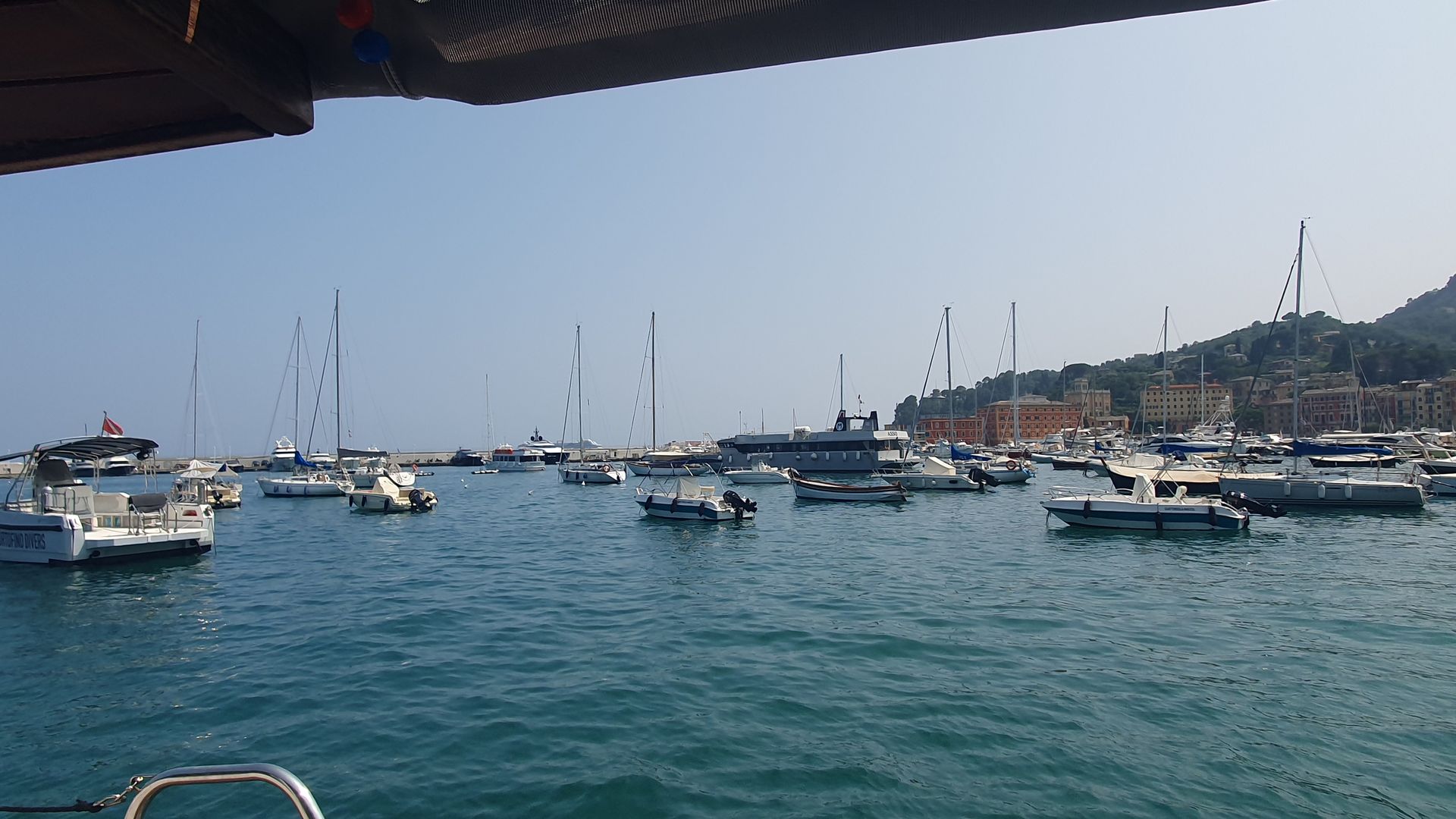 09.06.2025, Wie immer geht es 7:30 Uhr los. Der starke Wind war weg und wir dachten, es würde eine schöne Überfahrt. Aber es kam anders. Wir mussten zwischen dem Festland und der Insel Palmaria durch. Hier hatten sich sehr hohe Wellen noch vom Vortag aufgebaut und es wurde eine heftige Berg- und Talbahnfahrt. Zum Ende der Fahrt wurde es wieder ruhiger und unser Ziel war ein Ankerplatz vor der Marina Portefino. Leider lag hier ein Kreuzfahrtschiff vor Anker so dass ein reger Betrieb zwischen Kreuzfahrschiff und dem Hafen bestand. An Ankern war nicht zu denken. Also weiter zur nächsten Ankerbucht. Auch hier keine Möglichkeit, da dort eine große Superyacht die Bucht in Beschlag nahm. Also Weiterfahrt nach Santa Mageritha. Der Ort sieht vom Wasser sehr, sehr hübsch aus. Dort im Hafenbecken, Anker runter und alles war gut. Hier herrschte ein großer Andrang zu den Ausflugschiffen. Leider kamen wir einem Ausflugschiff, das später in der Nähe an eine Muring anlegte, immer näher. Also Anker hoch und eine neue Stelle suchen. Den haben wir dann auch gefunden und eine ruhige Nacht verbracht.