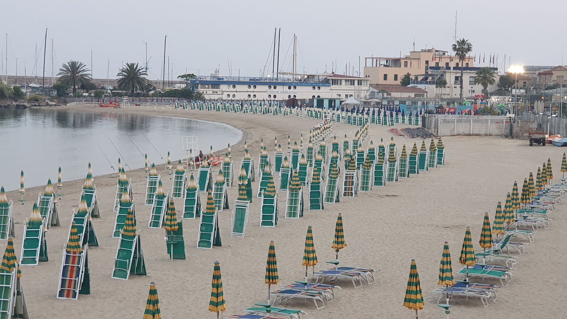 05.06.2025, 7:15 Uhr geht’s los, Richtung Rosignano. Die Wettervorhersagen sind leider auch nicht gut. Wind und Wellen, der Himmel bedeckt und es sieht nach Regen aus. Der Wind hatte zwar von 7 Bft auf 4 Bft abgenommen, die Wellen waren allerding hoch und wir bekamen die Wellen von der Seite. Das wiederum kann gefährlich werden, also zick, zack fahren, damit die Welle von vorne kommt. Nach einigen Stunden konnten wir Kurs auf unser Ziel nehmen und hatten dabei die Welle von hinten. Sie schob uns 39 SM voran. Tanken in der Marina Cala de‘ Medici und anschließend vor der Marina Wind geschützt ankern. Die Badestrände sind für den Sommer bereits vorbereitet. Tausende Liegen und Sonnenschirme stehen am kilometerweiten Strand. Mein Gott, was wird hier in den Ferien los sein.
