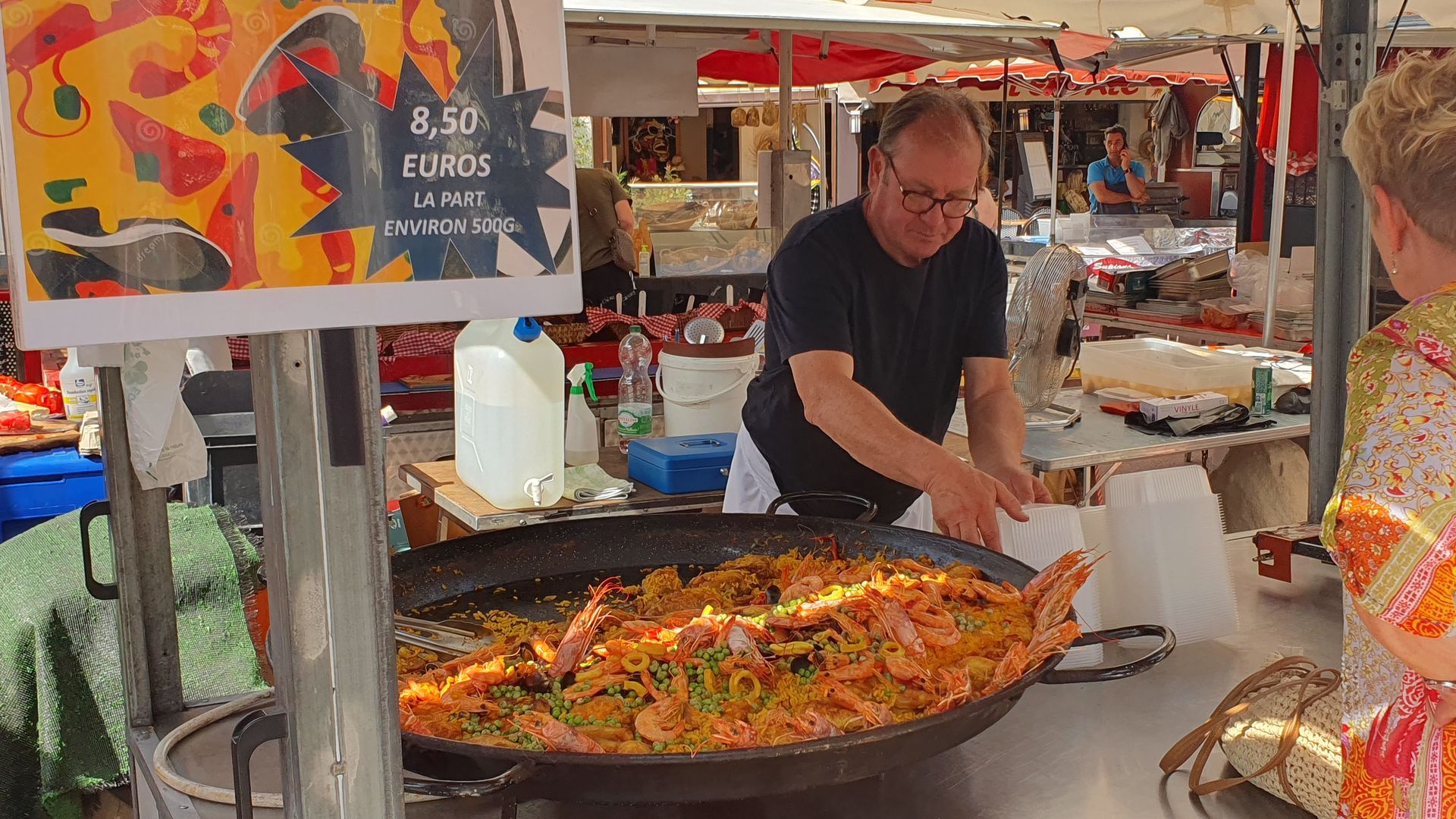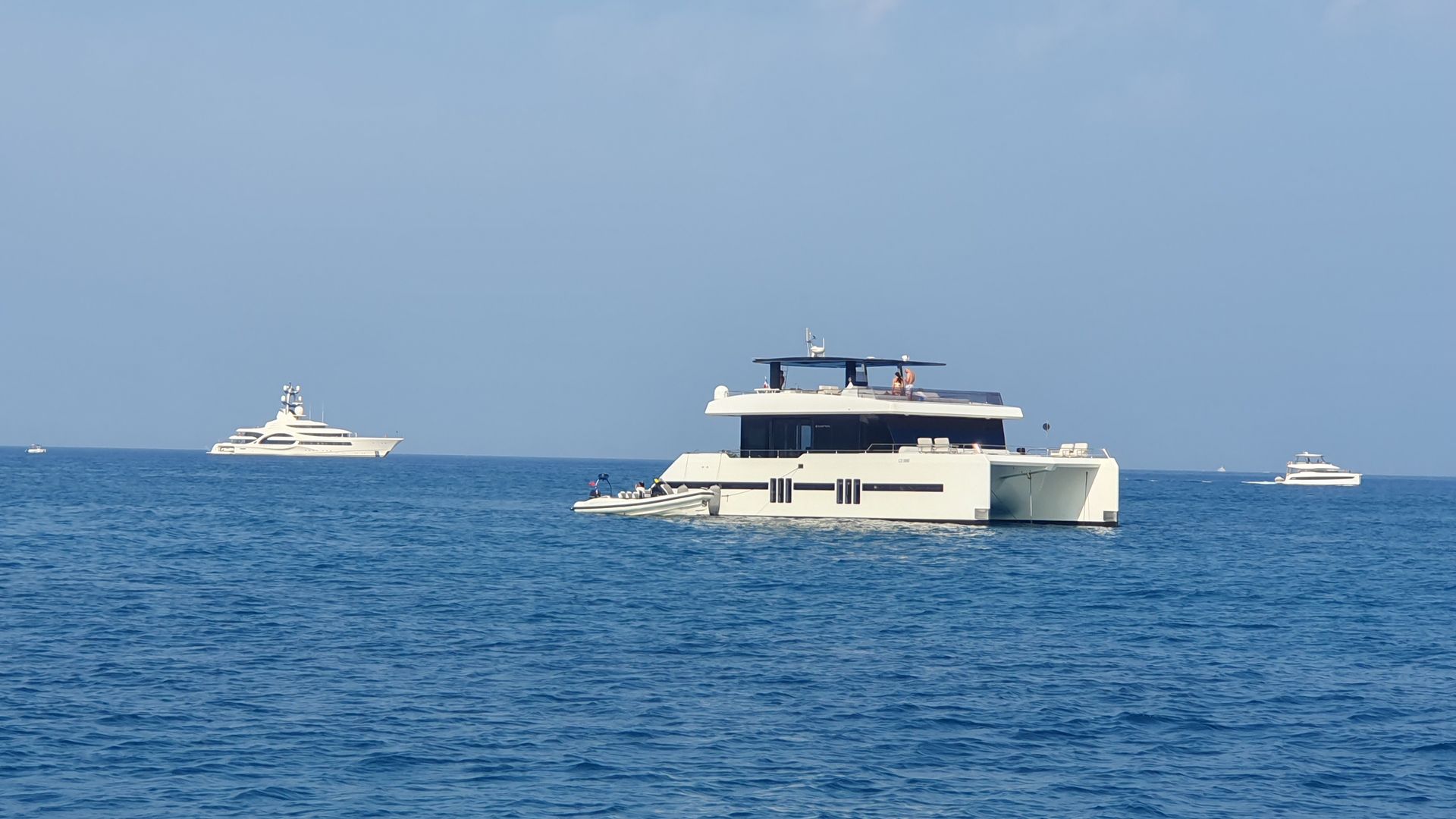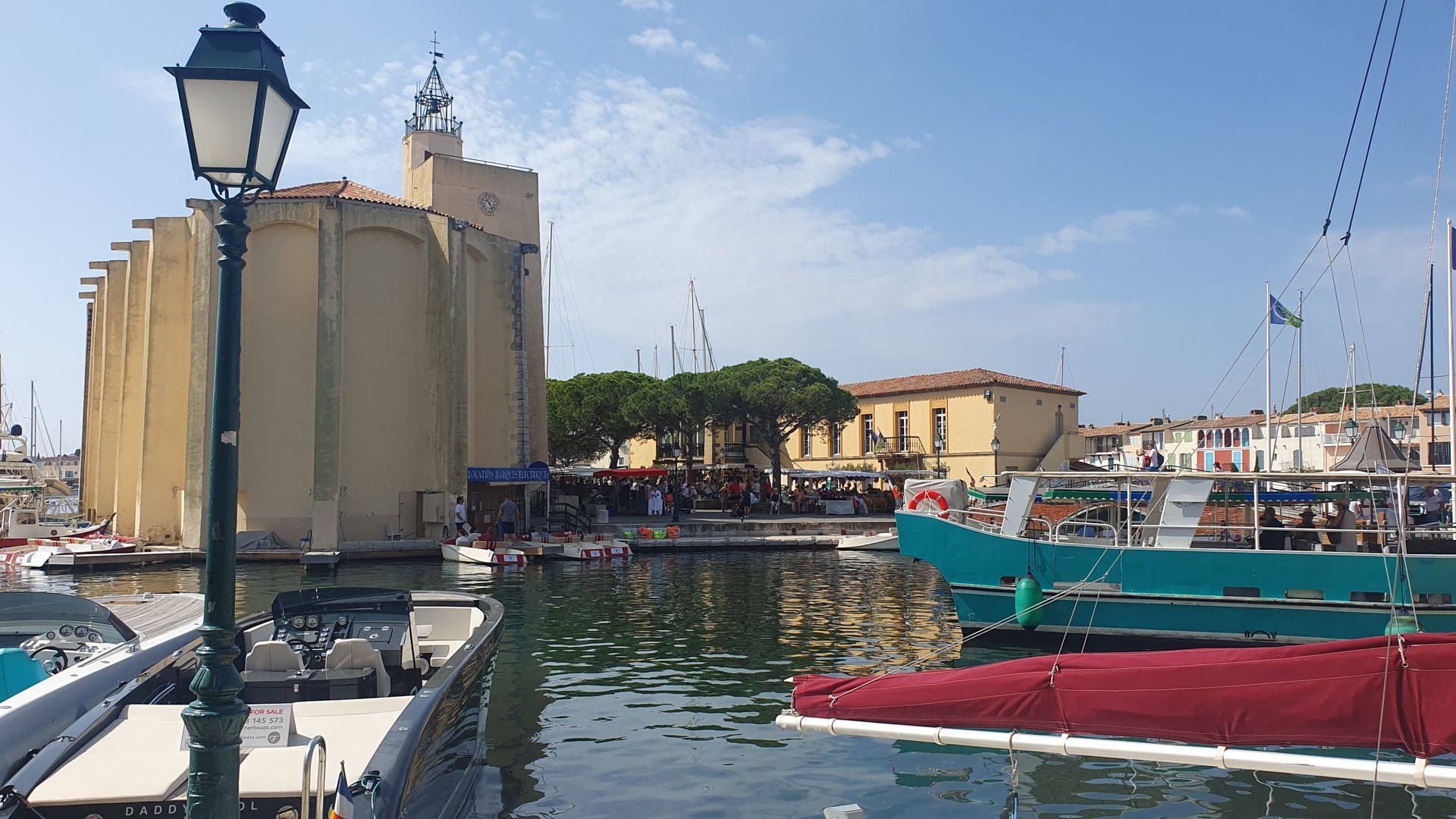 14.06.2025 bis 16.06.2025, Einfahrt in die Bucht vor Saint Tropez. Hier liegen riesige Yachten in Serie. Wir sind aber in die Bucht bis vor Port Grimand gefahren. Hier wollten wir abwettern. Da der Mistral-Wind immer noch heftig blies, bekamen auch wir Böen von 5 Bft ab, aber der Anker hielt. Nur der extreme Bootsverkehr und vor allen Dingen die Jetski, haben immer wieder für erhebliche Schwell gesorgt, so dass man tagsüber nicht zur Ruhe kommen konnte. Ein Ausflug nach Port Grimand hat sich auch gelohnt. Hier ist Frankreich. Es war dort Markt, mit vielen Spezialitäten. Würziger Käse, frische Baguette und leckeren Leberpastete, wurde mit an Bord genommen. Ferner hatten wir auch verschiedene Sorten an Tartelles (kleine herzhafte Törtchen) mitgenommen, die wir uns dann abends haben schmecken gelassen. Heftig war allerdings die Tagestemperatur von 36 Grad, der Spitzenwert lag später bei 40,6 Grad. Im kühlen Nass mussten wir uns abkühlen, Wassertemperatur 25 Grad.