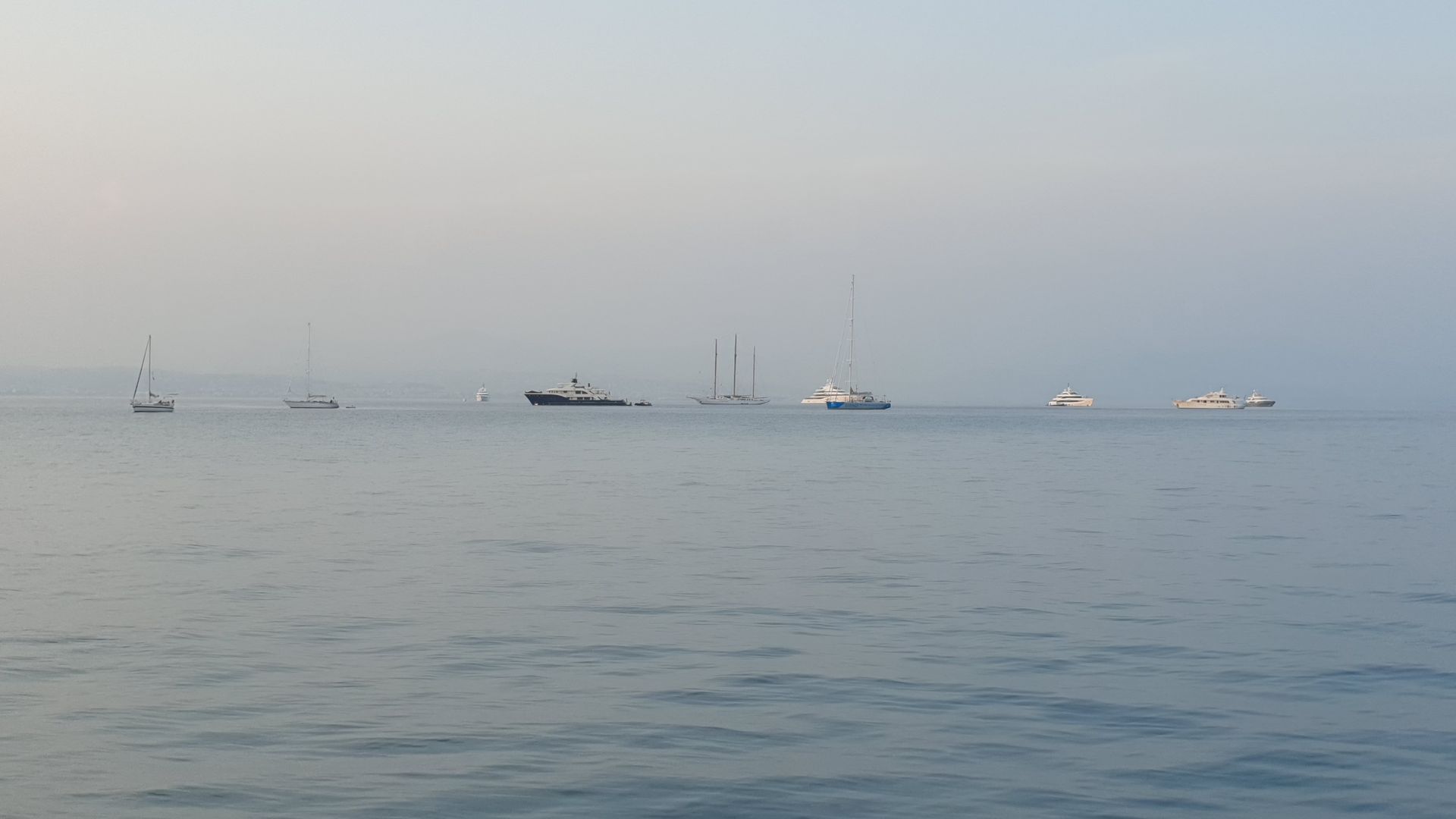 13.06.2025, Um 7:00 Uhr werden wir munter und es soll losgehen. Heute ist Freitag der 13te und der Aberglaube sollte sich bestätigen. Beim Rausfahren aus der Liegebox, verfängt sich die Muring mit unserer Antriebsschraube. Ein Problem, was man nicht haben will, weil meistens ein Taucher ran muss. Gott sei Dank hat ein Nachbar das Problem erkannt und uns Hilfe angeboten. Mit einem Schnorchel versehen, ist er ¾ Stunden immer wieder getaucht und hat uns von der umwickelten Leine befreit. Auf die Frage, was er für die Tauchstrapazen haben möchte, bat er um 20,--€. Nein das geht nicht, wir haben den Betrag um einiges erhöht. Wir sind dann los nach Antibes, tanken und dann vor der Marina Ankern. Es ist unvorstellbar, wie viele Superyachten im Hafen liegen. Die ganz großen Yachten ankern allerdings vor der Marina, weil sie von der Größe her nicht in den Hafen passen. Dieses Problem haben wir in der ganzen Region um Saint Tropez und Port Grimand gesehen. Der Wetterbericht sagt nichts Gutes. Der Mistralwind soll kommen. Ein Wind, der die Rhone runter kommt und sehr, sehr viel Wind bringt. In Port-Saint-Louis-du-Rhône weht es heute bereits bis zu 9 Bft. Der Sturm macht sich aber auch bei uns bemerkbar und wir versuchen einen Hafen zu finden. Leider wurden wir auf den nächsten Tag vertröstet. Unser neues Ziel, die große Bucht von Saint Tropez. Unterweges hatten wir starken See Nebel, deshalb Radar an und die Augen aufhalten.
