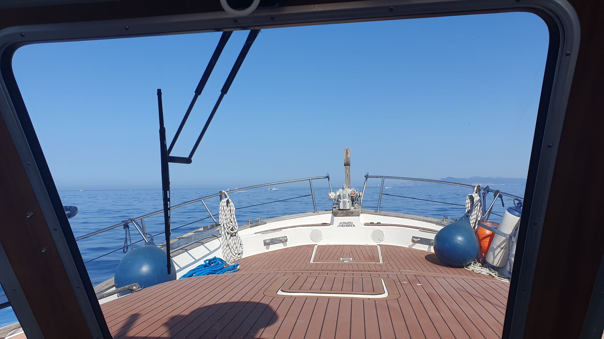 22.05.2025, Unser nächstes Ziel war Cetraro. Auch hier war die Überfahrt recht ruhig. In den Hafen zum Tanken und vor dem Hafen war eine gute Stelle, den Anker fallen zu lassen. Es gab eine ruhige Nacht, obwohl wir um 4:00 Uhr von den rausfahrenden Fischerbooten geweckt wurden.