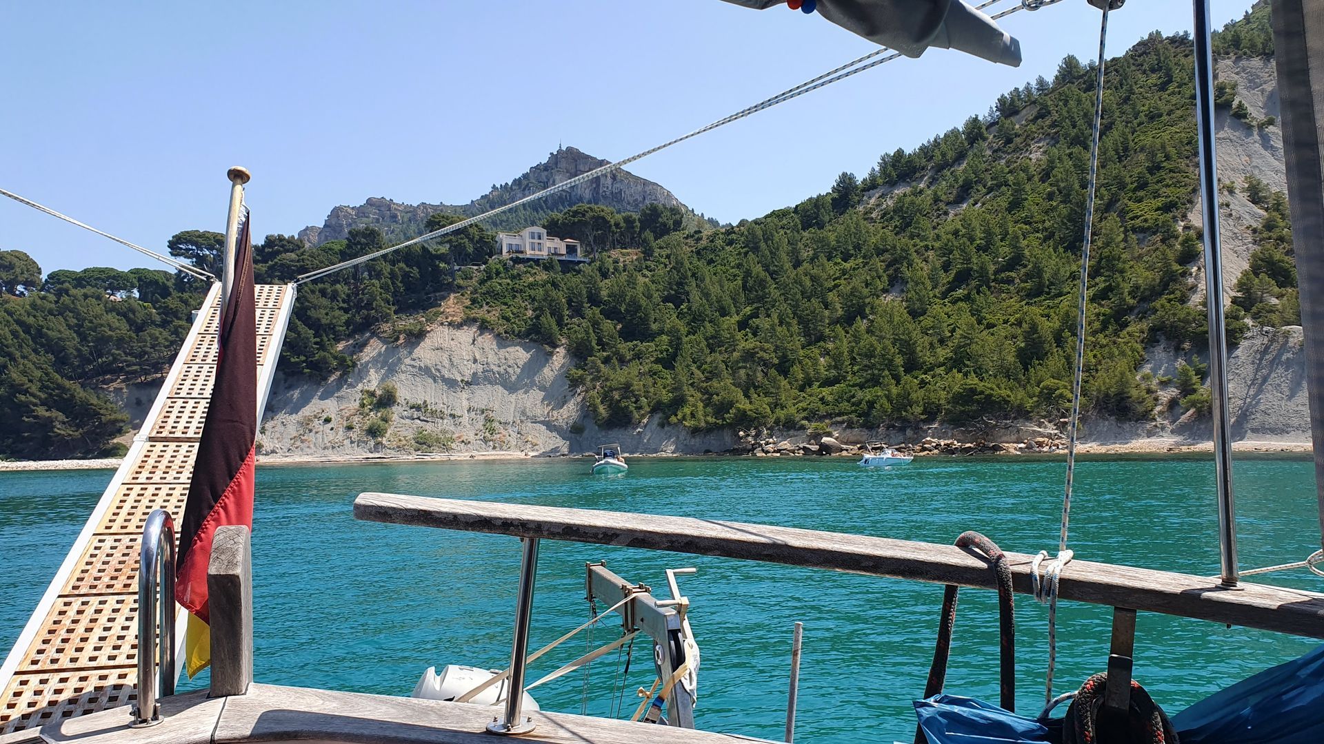 18.06.2025, unser nächstes Ziel war eine Bucht, in der Nähe des Ortes Cassis. Der Ort Chassis ist eng verbunden mit dem Abbau von Kalkstein. In der Nähe des Ortes liegen riesige Kalksteinbrüche. Der Sockel der Freiheitsstatue von New York stammt von hier. Die großen Kalksteinquader werden direkt per Frachtschiff in die ganze Welt verschickt. Wir haben hier eine wunderschöne Bucht zum ankern gefunden. Gerne wären wir noch einige Tage geblieben. Ab es muss weitergehen.