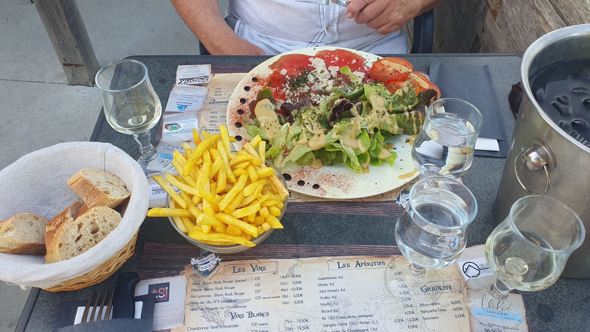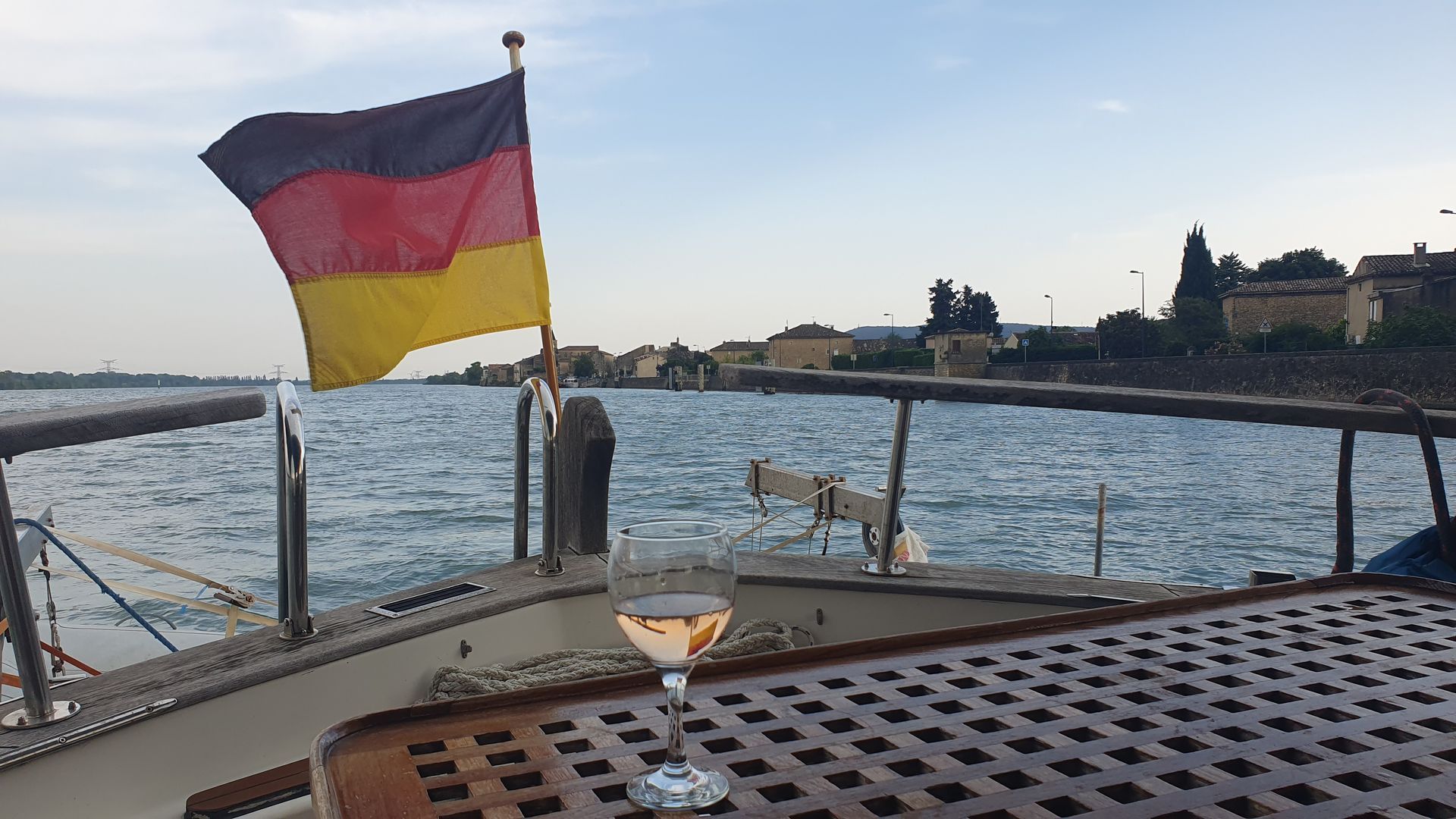 19.06.2025, Happy, Wir sind happy!!! Wir sind in Port Louis an der Rhone angekommen. Es war eine sehr, sehr harte Tour. Viel Wind und hohe Wellen, aber jetzt sind wir hier. Die erste große Etappe geschafft. Hier ein paar Zahlen. 1248 Seemeilen ( 2.311 KM), 178 Stunden Motorleistung, das heißt, wir waren 178 Stunden auf See. Jetzt unsere Bestände an Trinkwasser und Lebensmittel auffüllen und das Schiff von Salzwasser reinigen. Außerdem den Abend im Restaurant genießen. Der Google-Übersetzer tut uns gute Dienste, einige Wörter können wir sogar erraten. Am 21.06.2025 geht es dann in die Seeschleuse, die vor der Tür liegt, in die Rhone