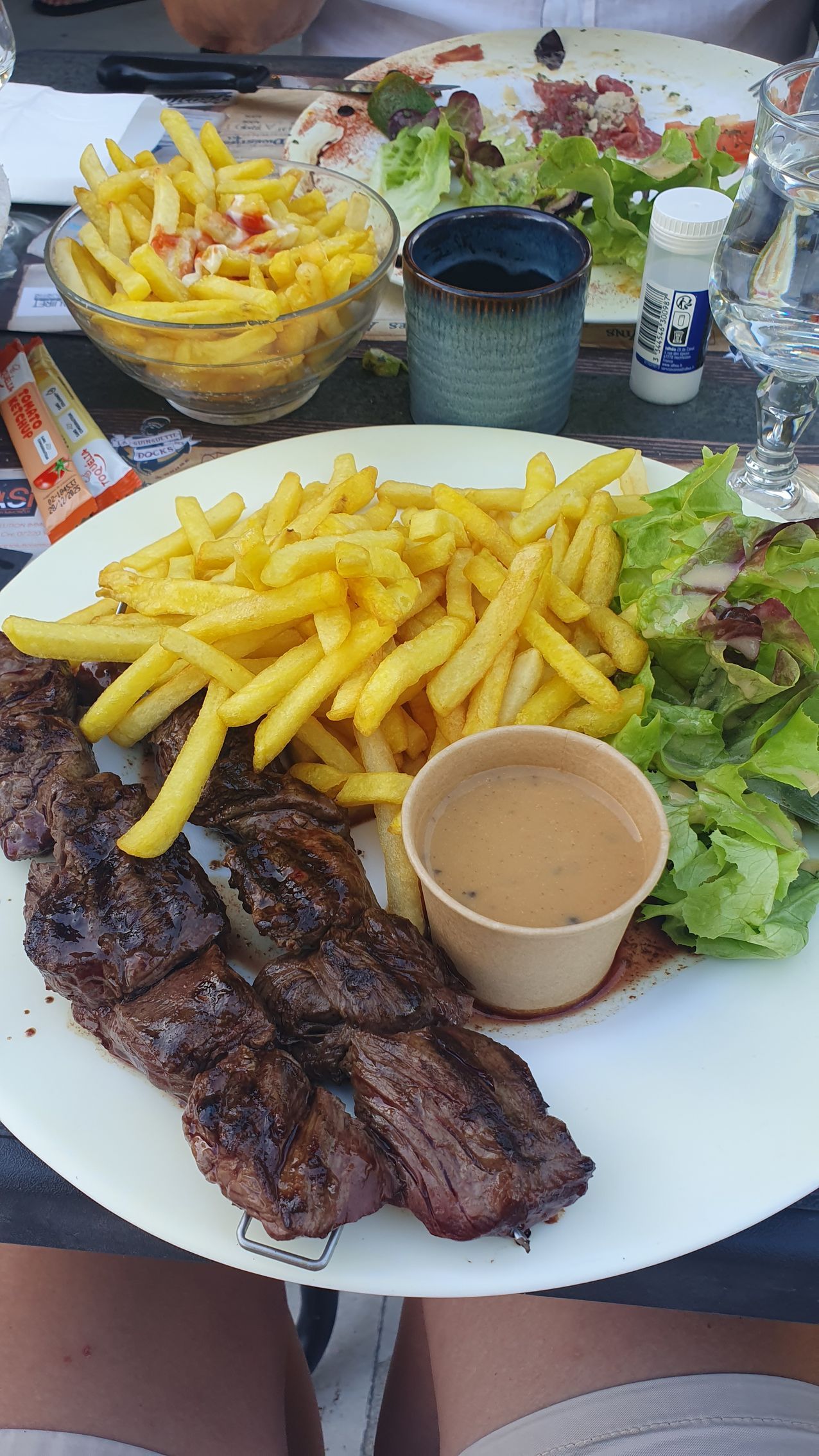 26.05.2025 Nach all den Belastungen haben wir heute eine Auszeit genommen, unsere Bestände durch Einkäufe ergänzt und die Seele baumeln lassen. Währen der Einkaufzeit habe ich es mir im Hafen, im Restaurant „Da Maria“, bei einem Gläschen Wein gut gehen lassen und anschließend mit Ellen noch gut gegessen.