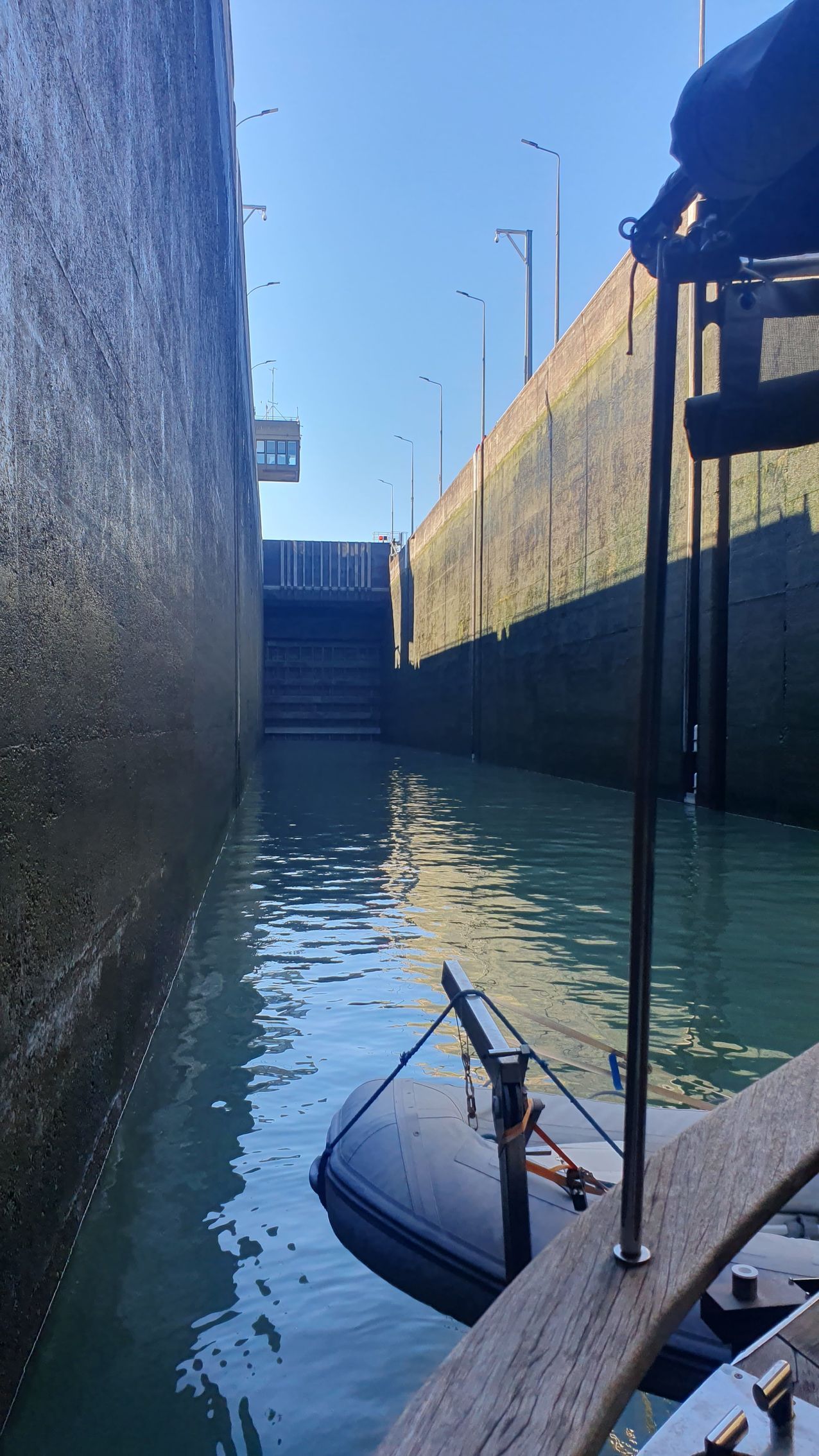 Der Hafen, in dem Pauline bis September liegen soll, ist gleich hinter der Schleuse. Anlegen und die Reise ist für uns zu Ende. Am Sonntag, den 06.07.25 geht es zurück nach Hause.