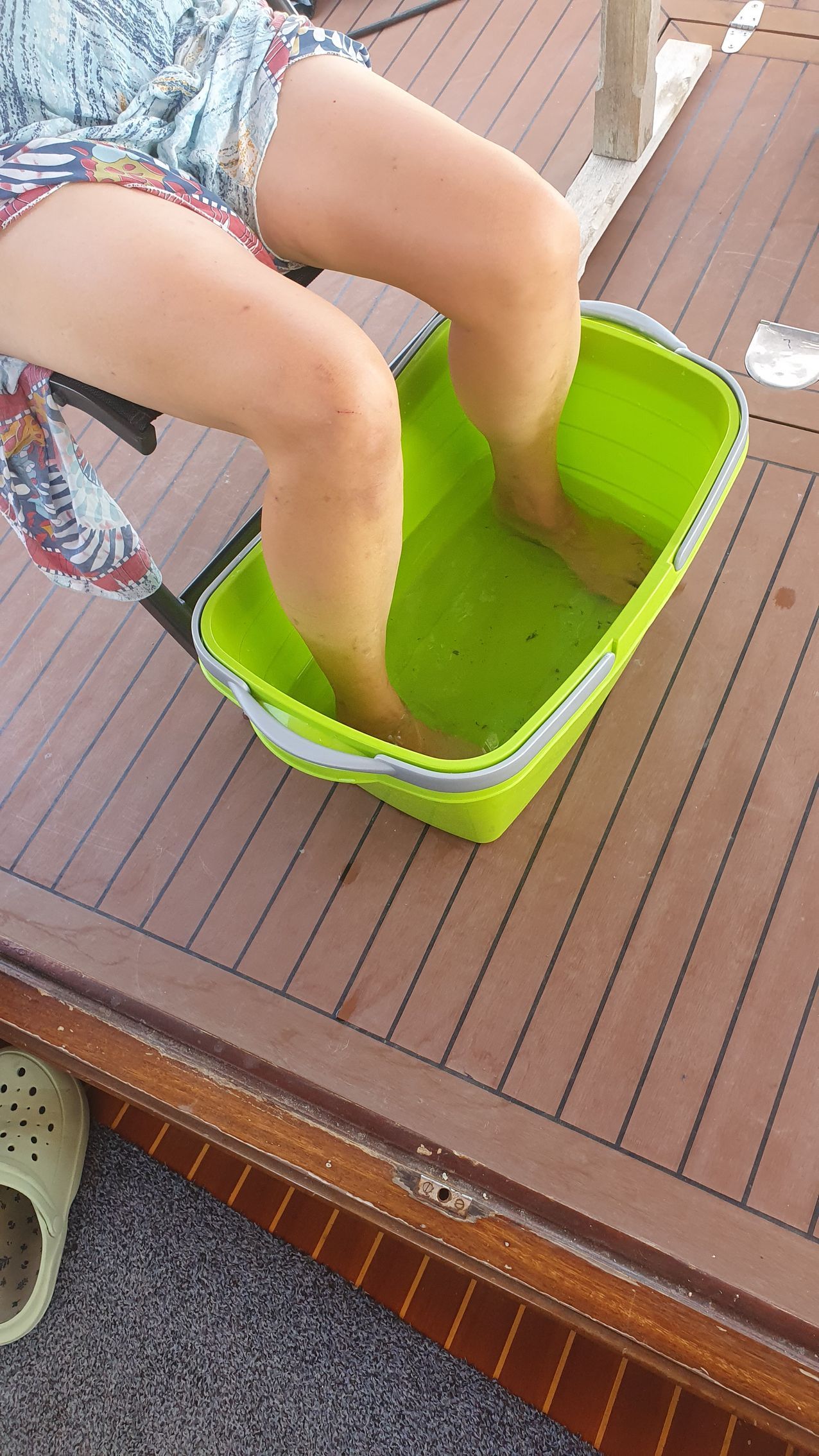 13.05.2025, Aufbruch nach der Marina Monopoli , zum Ankern vor dem Hafen. Motor wieder zu heiß. Es ist zum verrückt werden. Aber dann hat Ellen, mein Monteur, das Problem gefunden. Eine Leckage im internen Kühlwasserkreislauf. Mit Bordmitteln konnte sie die Reparatur vornehmen. Hier eine Erläuterung zur Besatzung: Ellen ist Smutje (Koch), Navigator (sucht die Strecke und die Häfen aus), Funker, Monteur, Ankerfrau, Taucher, Waschfrau und Matrose. Ich, ja ich bin Kapitän!